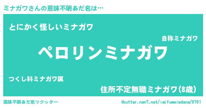 | 男性向けラノベタイトル風あだ名 | 『ミナガワの憂鬱』『魔弾の王とミナガワ』 |