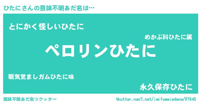 | 男性向けラノベタイトル風あだ名 | 『ひたにの憂鬱』『ヒタニスレイヤー』 |