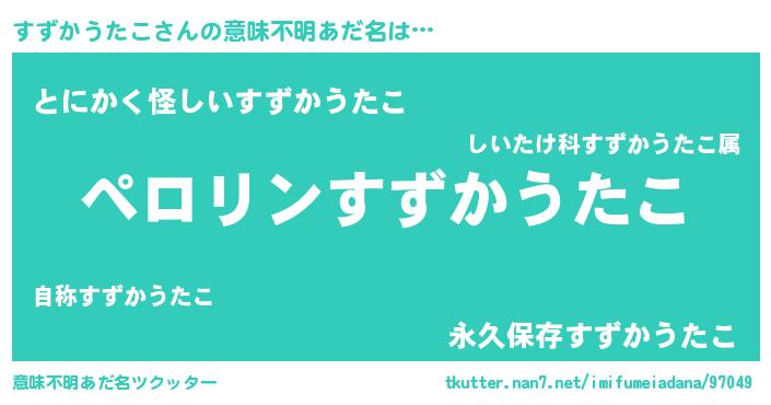 | 男性向けラノベタイトル風あだ名 | 『スズカウタコアートオンライン』 |