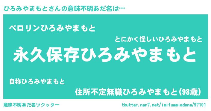 | ヘコむあだ名 | 『ひろみやまもと(爆)』『ひろにゅー』 |