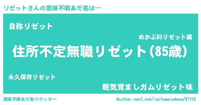 | ヒーロー風カッコイイあだ名 | 『仮面リゼダー』『超時空戦士リゼット』 |