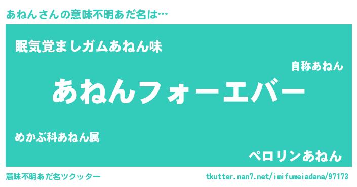 | 女子向けラノベタイトル風あだ名 | 『あねんの婚約者』『死神あねんの再婚』 |