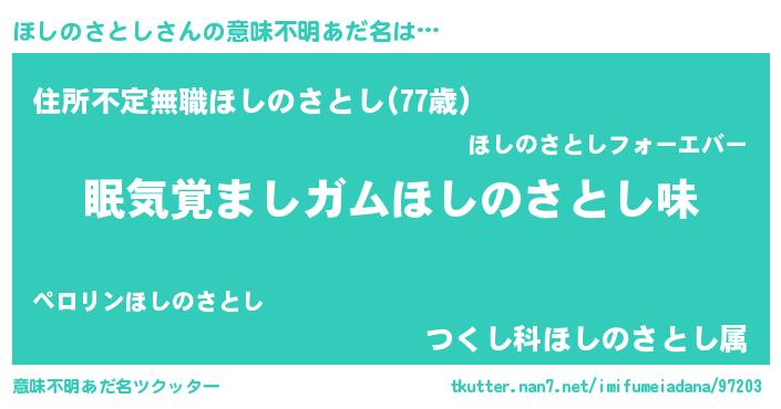 | 欧米人風あだ名 | 『アンジェラ・ほしのさとし』 |