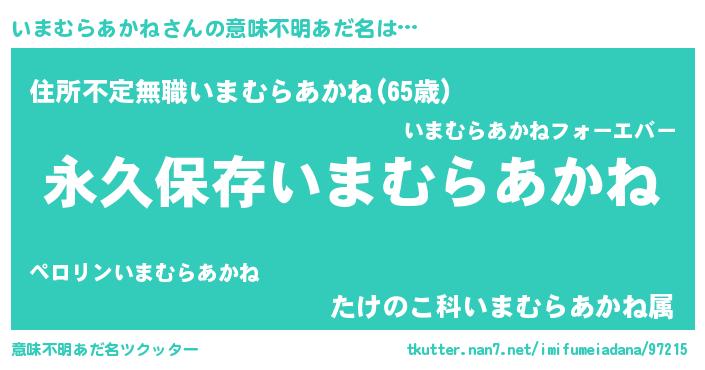 | 胡散臭い通販商品みたいなあだ名 | 『来世でも幸せになれる健康食品…その名も「いまむらあかね」』 |