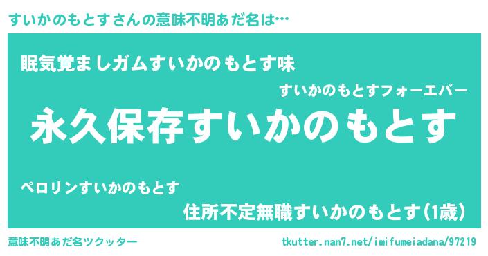 | 胡散臭い通販商品みたいなあだ名 | 『前代未聞の水素水…その名も「すいかのもとす」』 |