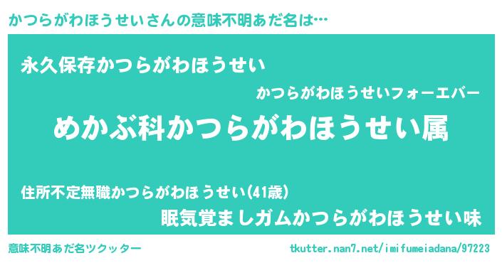 | ヘコむあだ名 | 『かつらがわほうせい(笑)』『つくし』 |