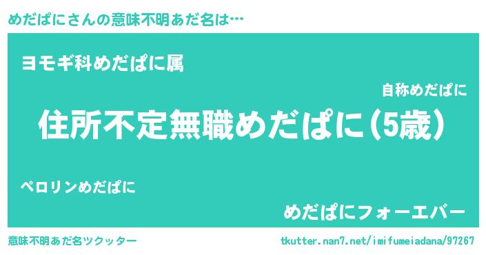 | ヘコむあだ名 | 『豆乳』『めだにゅー』『めだを』 |