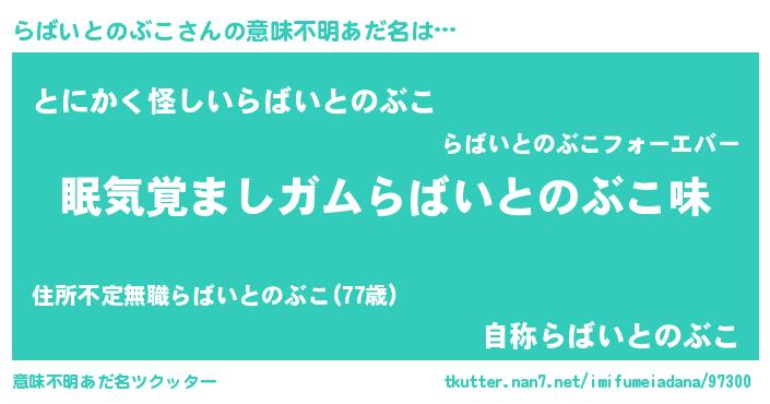 | ヘコむあだ名 | 『らばを』『酢こんぶ』『らばにゅー』 |