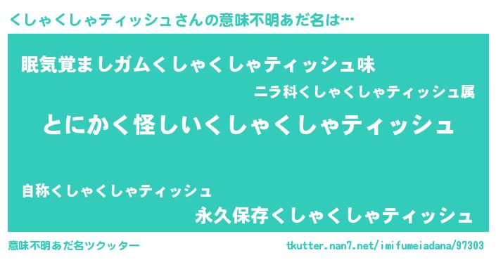 | 女子向けラノベタイトル風あだ名 | 『くしゃくしゃティッシュの卵を拾いまして』 |