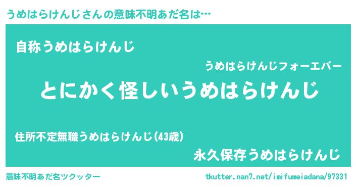 | ヘコむあだ名 | 『うめっ子』『うめはらけんじ(遠い目)』 |