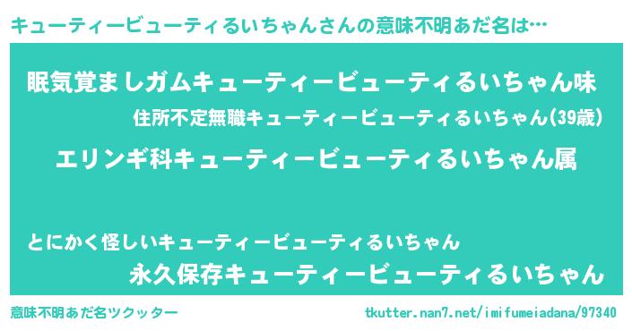 | ヘコむあだ名 | 『キューティービューティるいちゃん(震え声)』 |