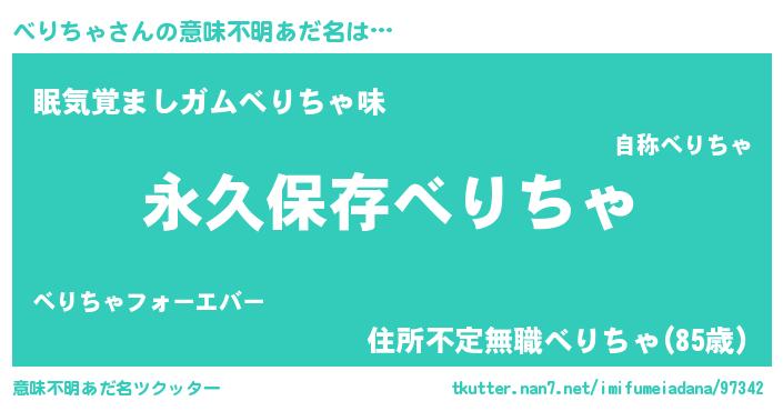 | 男性向けラノベタイトル風あだ名 | 『べりちゃという概念が存在しない退屈な世界 』 |