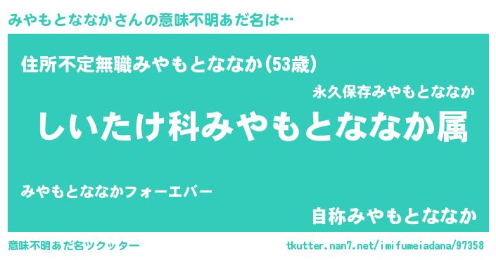 | ヒーロー風カッコイイあだ名 | 『仮面ミヤダー』『ネオミヤモトナナカ』 |