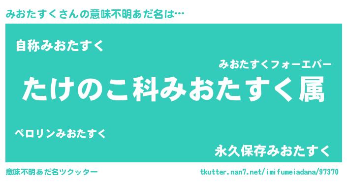 | 男性向けラノベタイトル風あだ名 | 『転生したらみおたすくだった件』 |
