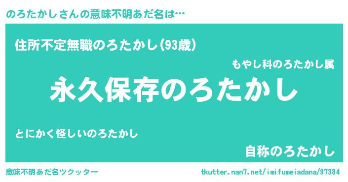 | 男性向けラノベタイトル風あだ名 | 『のろたかしという概念が存在しない退屈な世界 』 |