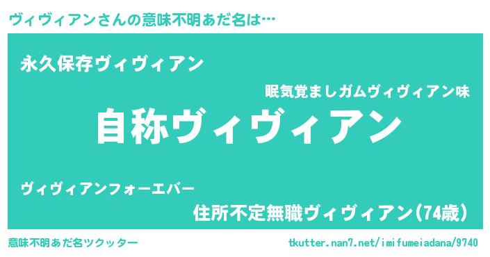 | 男性向けラノベタイトル風あだ名 | 『Re:ヴィヴィアンから始める異世界生活』 |