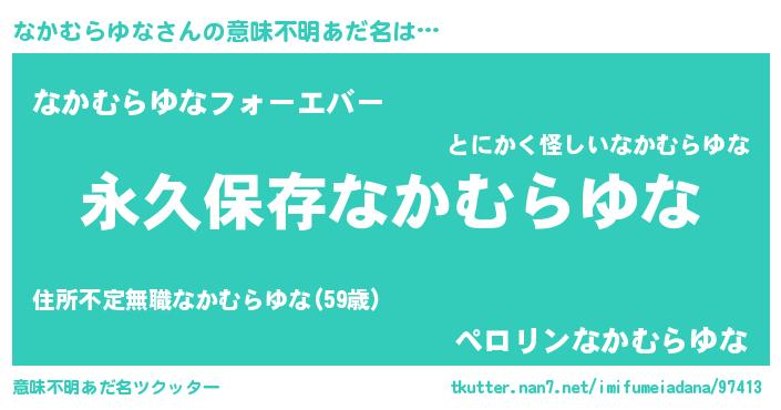 | ヘコむあだ名 | 『なかむらゆな(遠い目)』『なまこ酢』 |