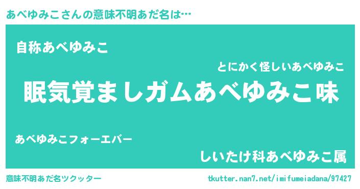 | 男性向けラノベタイトル風あだ名 | 『おまえをオタクにしてやるから、俺をあべゆみこにしてくれ! 』 |