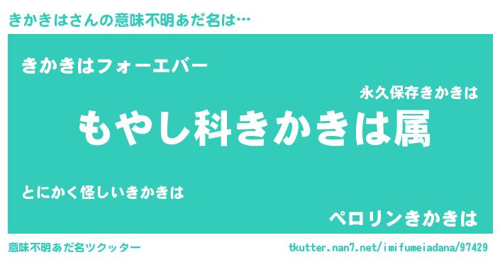 | ヘコむあだ名 | 『なまこ酢』『きかもー』『きかっ子』 |