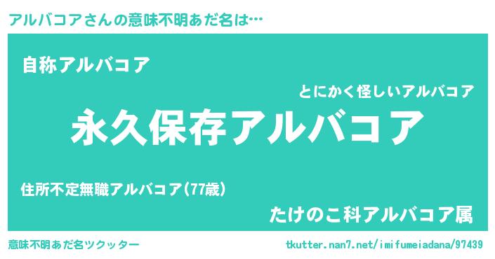 | 胡散臭い通販商品みたいなあだ名 | 『来世でも幸せになれる健康食品…その名も「アルバコア」』 |