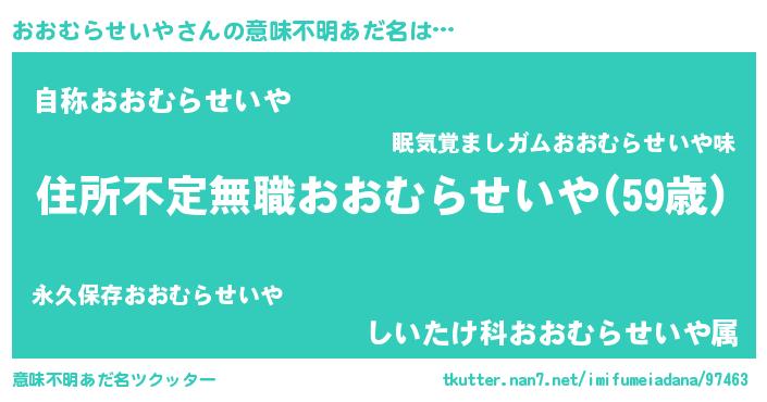 | 伝説のあだ名 | 『救世主となる占い師おおむらせいや』 |