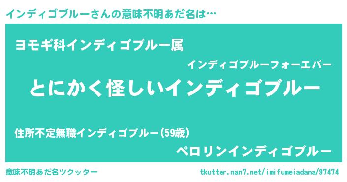 | 男性向けラノベタイトル風あだ名 | 『うちのインディゴブルーが世界を掌握している!』 |