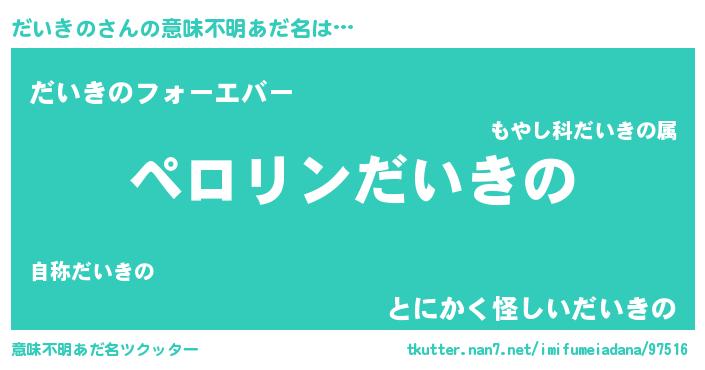 | 胡散臭い通販商品みたいなあだ名 | 『億万長者になれる霊験あらたかなお札…その名も「だいきの」』 |
