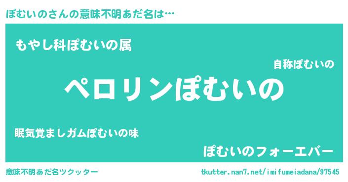 | 男性向けラノベタイトル風あだ名 | 『ぽむいのの憂鬱』 |