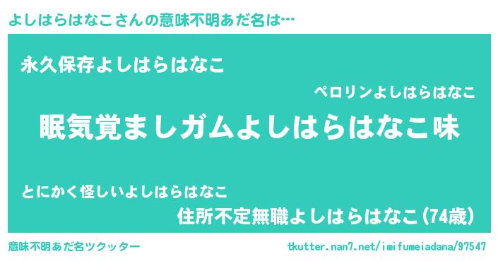 | ヘコむあだ名 | 『よしはらはなこ(笑)』『よしもー』 |