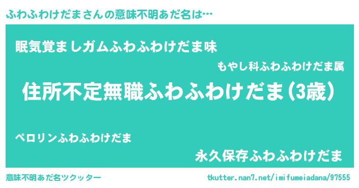 | ヒーロー風カッコイイあだ名 | 『仮面フワダー』『ネオフワフワケダマ』 |