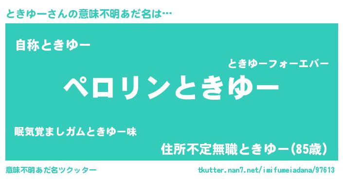 | ヒーロー風カッコイイあだ名 | 『スーパートキユー』『仮面トキダー』 |