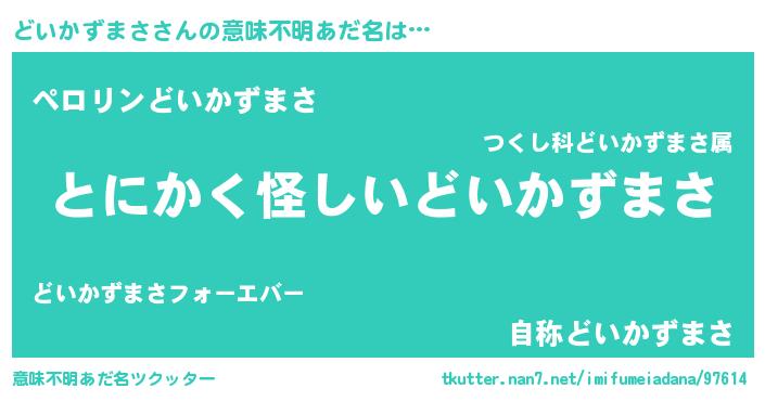 | 男性向けラノベタイトル風あだ名 | 『どいかずまさの嫁は女の子じゃないと思った?』 |