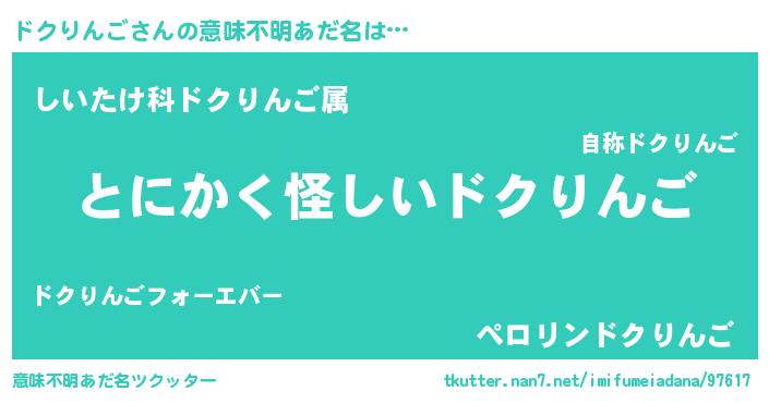 | 男性向けラノベタイトル風あだ名 | 『ドクりんごの嫁は女の子じゃないと思った?』 |