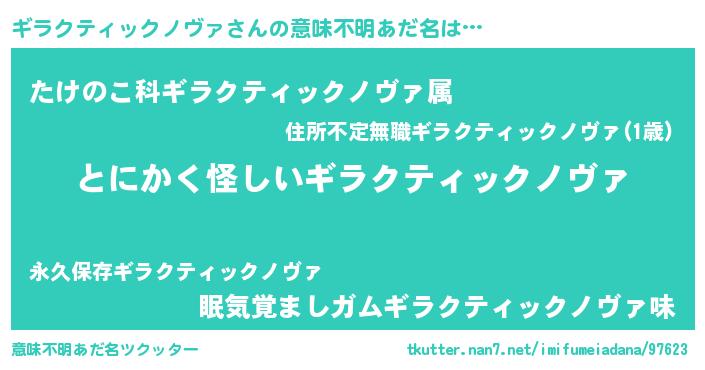 | 欧米人風あだ名 | 『ウサインギラクティックノヴァ』 |