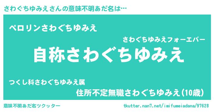 | 男性向けラノベタイトル風あだ名 | 『Re:さわぐちゆみえから始める異世界生活』 |