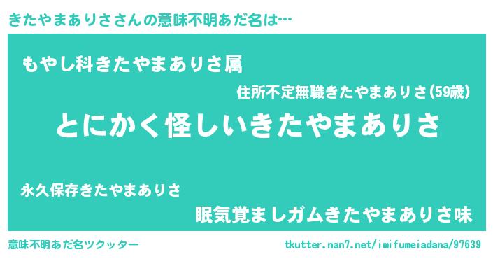 | ポケモン風あだ名 | 『ヒキタヤマアリサ』『メロキッタ』 |