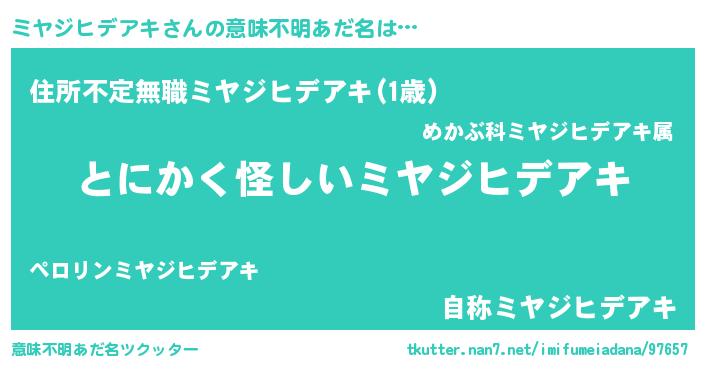 | ポケモン風あだ名 | 『ヒミヤジヒデアキ』『ミーヤイ』 |