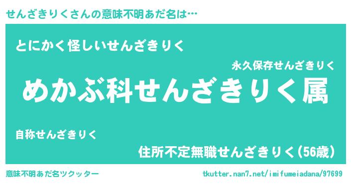 | 胡散臭い通販商品みたいなあだ名 | 『信頼と実績のサプリメント…その名も「せんざきりく」』 |