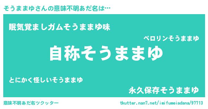 | 男性向けラノベタイトル風あだ名 | 『Re:そうままゆから始める異世界生活』 |