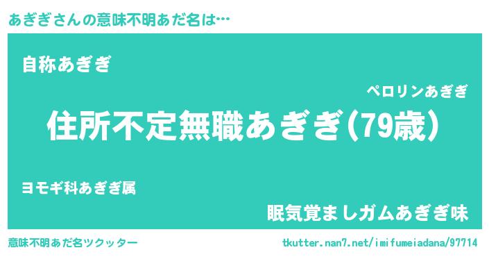 | 男性向けラノベタイトル風あだ名 | 『この素晴らしい世界にあぎぎを!』 |