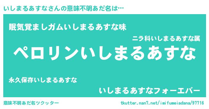 | ヒーロー風カッコイイあだ名 | 『スーパーイシマルアスナ』 |
