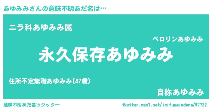| ヘコむあだ名 | 『あゆみみ(小並感)』『あゆもー』 |
