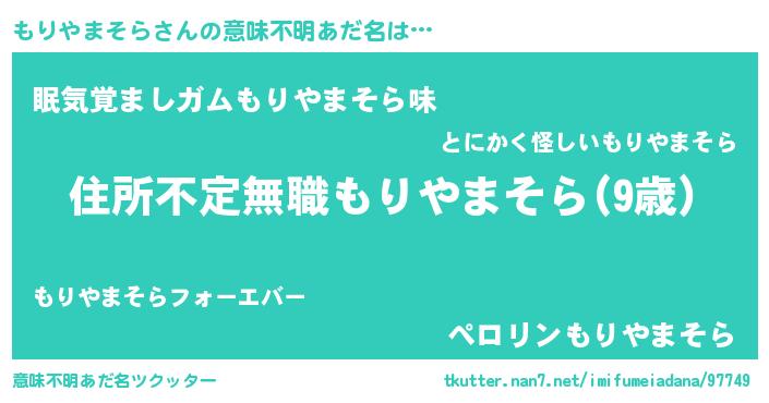 | 男性向けラノベタイトル風あだ名 | 『この素晴らしい世界にもりやまそらを!』 |