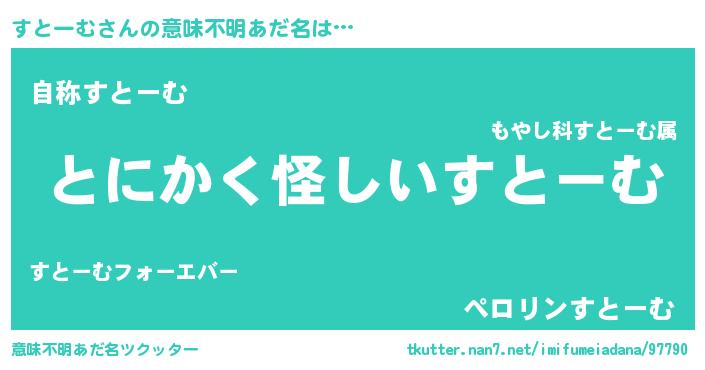 | 女子向けラノベタイトル風あだ名 | 『すとーむ様がみてる』 |