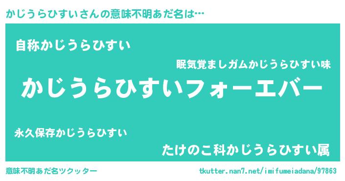 | 男性向けラノベタイトル風あだ名 | 『かじうらひすいに滅ぼされるだけの簡単なお仕事です』 |