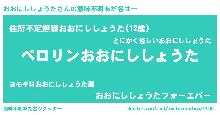 | ヒーロー風カッコイイあだ名 | 『スーパーオオニシショウタ』 |