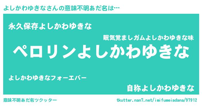 | ヘコむあだ名 | 『よしにー』『よしかわゆきな(苦笑)』 |