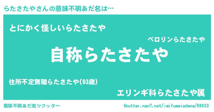 | 肩書あだ名 | 『らたさたや閣下』『らたさたや団長』 |