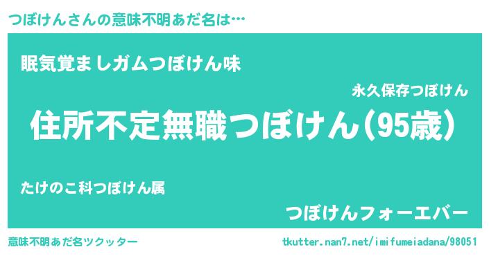 | ヒーロー風カッコイイあだ名 | 『仮面ツボダー』『天空の使者つぼけん』 |