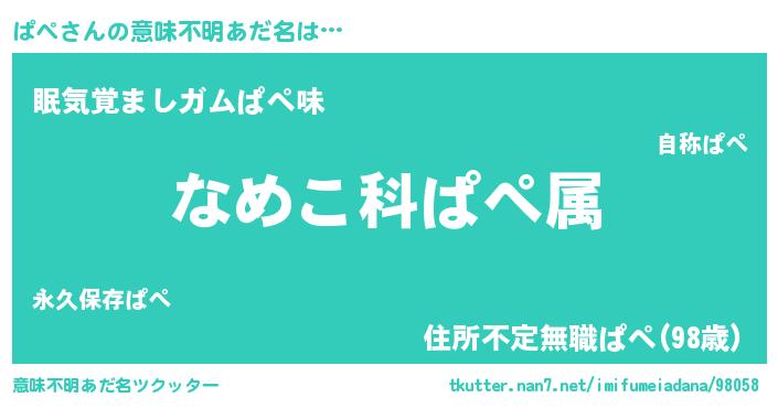 | ヘコむあだ名 | 『ぱぺ(笑)』『ぱぺっふぃ~』 |